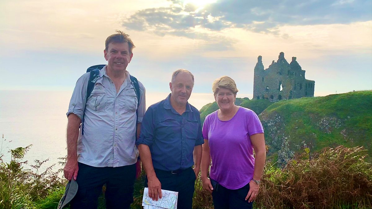 Clare joins two friends on what could possibly be the slowest walk between Land's End and John O'Groats. Hiking one week at a time (with a gap of several years when the Welsh coastline wasn't fully navigable) it's taken Iain McHenry and David Rowe 18 years to reach the coast of Dumfries and Galloway. That's where Clare joins them, on a beautifully sunny day, as they approach the village of Portpatrick on the remote Rhins of Galloway.
