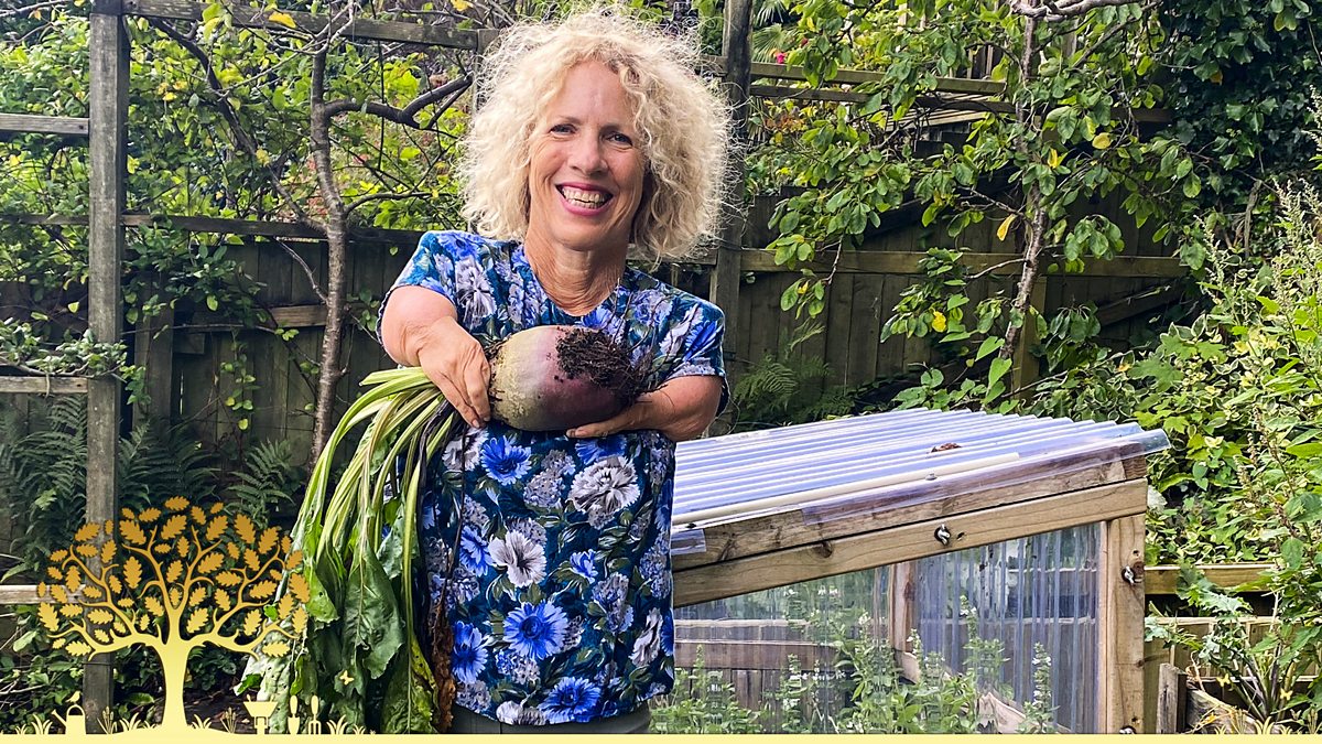 Sue Kent harvests some interesting crops from her garden, including daikon radish and almonds, before planting a spring flowering climber in her new-look seating area.