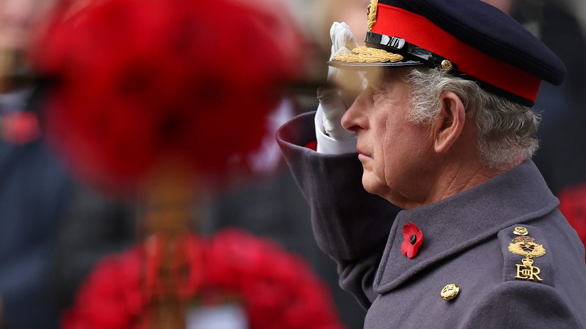 David Dimbleby presents highlights of the National Service of Remembrance as the King leads the commemorations at the Cenotaph in London.