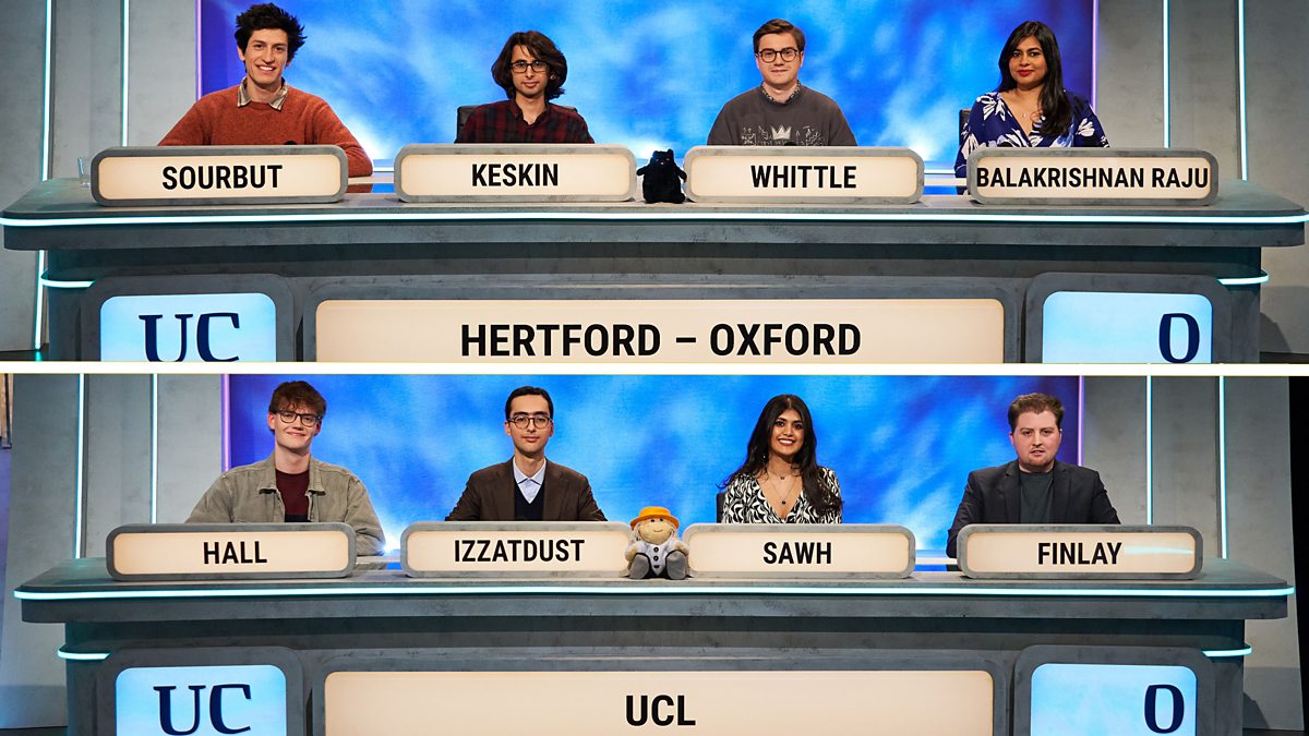The second round of the quiz competition for students continues. Hertford College, Oxford and UCL compete for a place in the quarter-finals. Amol Rajan asks the questions.