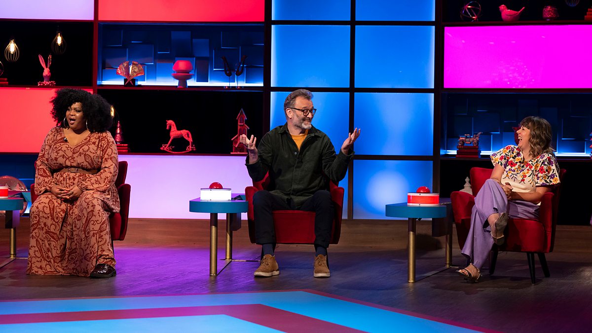 Hugh Dennis, Kerry Godliman, Gbemisola Ikumelo and Harry Judd test their general knowledge skills for a special festive show in Richard Osman's Festive House of Games.