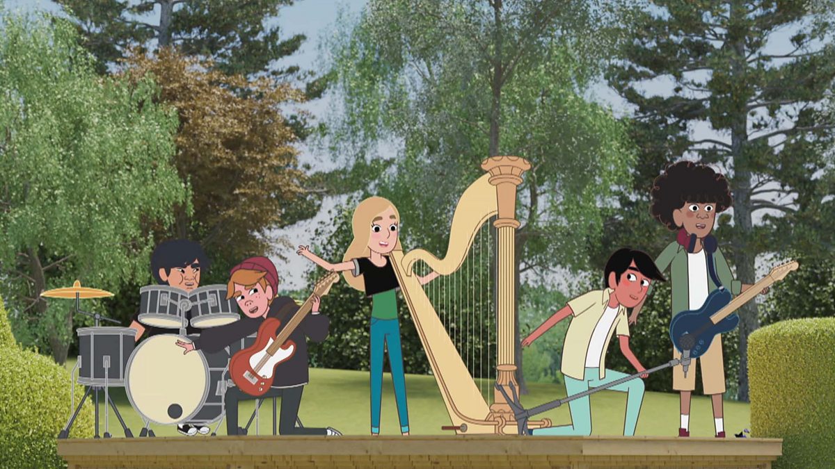 Stella is caught in the middle - she has promised to play the harp for the Queen Mother’s Garden Party on Saturday and at the same time her band are going to play at a party. What will she do?