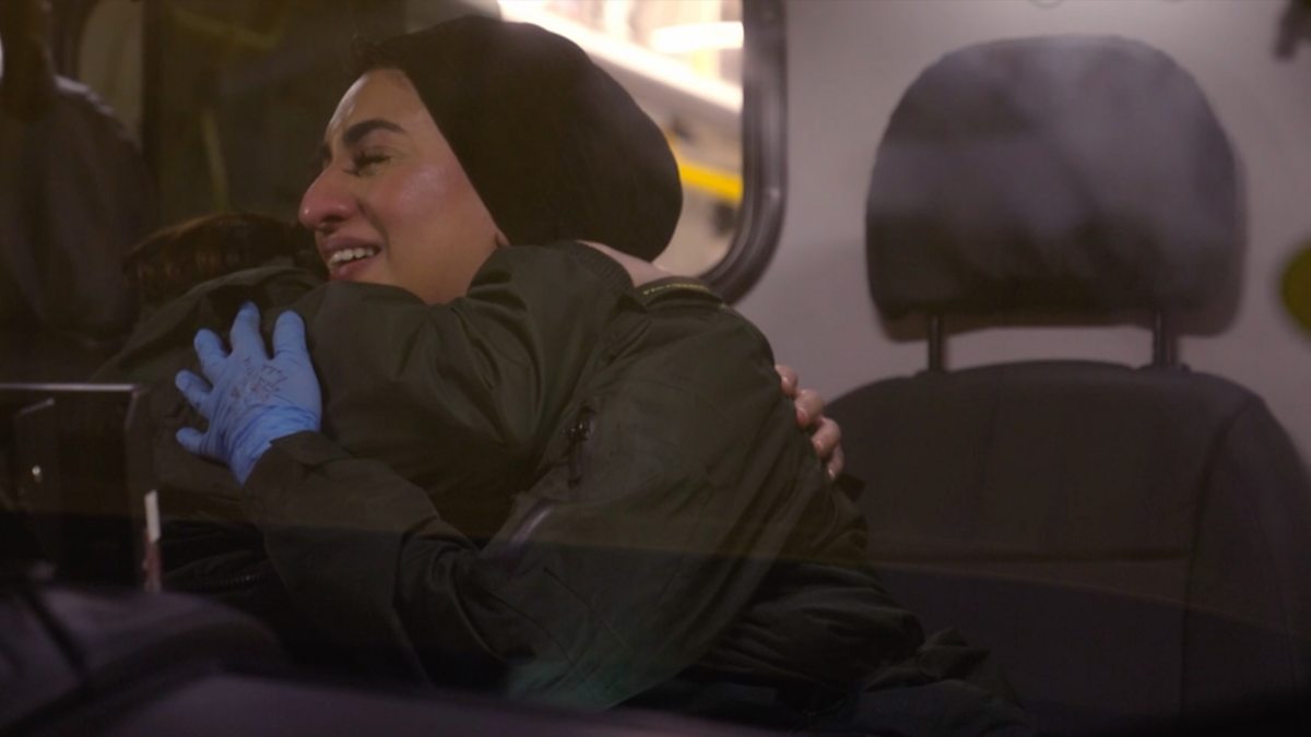 Dispatcher Gary sends Bushra and Kelsea to an 82-year-old lady who has had a fall. On arrival, they discover she has been on the floor all night. She didn’t call because she thought the effects of the fall might wear off, and the paramedics gently admonish her, saying she should have called for help straight away.