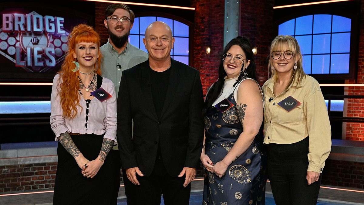Ross Kemp presents the quiz show where a team of four take on the Bridge of Lies. In this episode, they are friends Jessica, Emma, Mark and Sally.