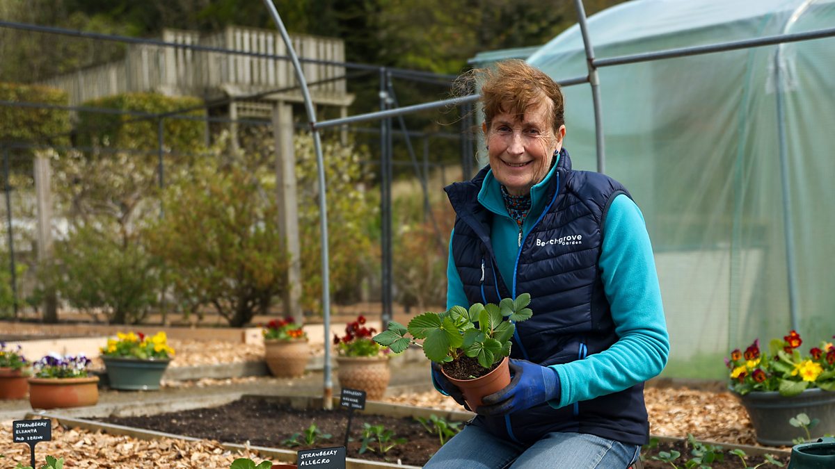 Carole is at Beechgrove planting out a new strawberry bed and looking at which tomato and cucumber varieties she will be growing in her 8x6 greenhouse.