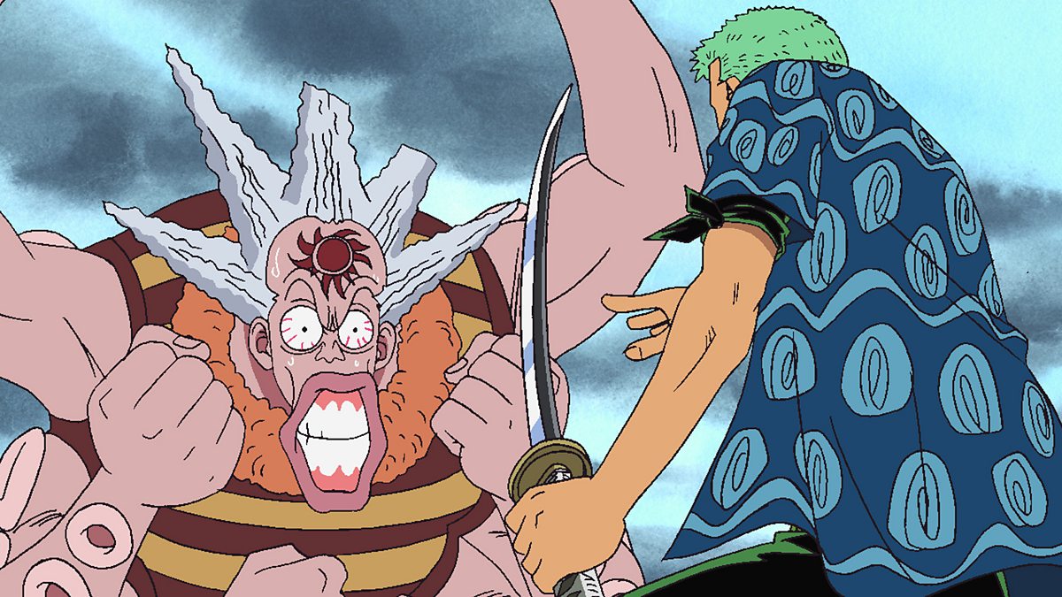 The Straw Hats and Arlong’s fishmen are locked in a swashbuckling slugfest, but things take a bad turn when Luffy gets trapped beneath the waves.