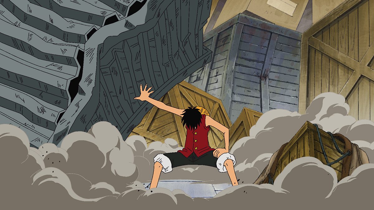 Outside the courthouse, giants Oimo and Kaashee continue to fight off the marines, but are overthrown with their human wave attack. The marines enter the courthouse and capture the Franky Family.