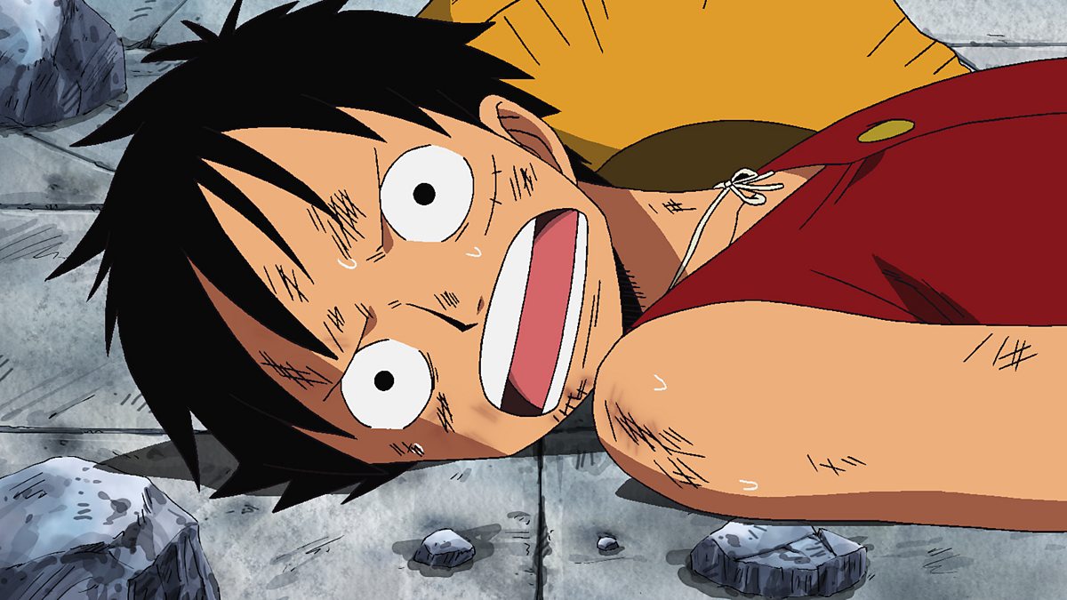 Luffy uses up his strength in his battle against Rob Lucci, and unable to move, he is stuck inside the support pillar.