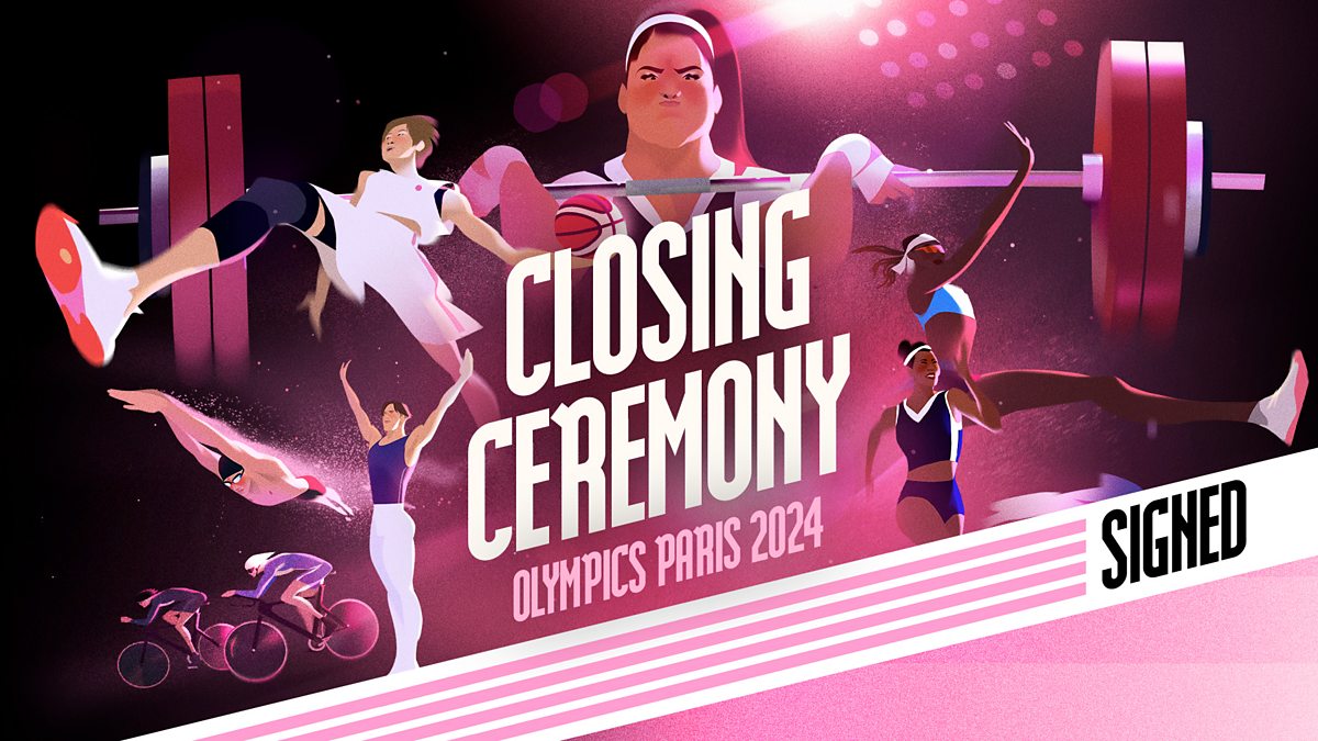 With signing, join Hazel Irvine and Andrew Cotter for the closing ceremony at the Stade de France as spectators, artists and athletes celebrate the greatest show on earth.