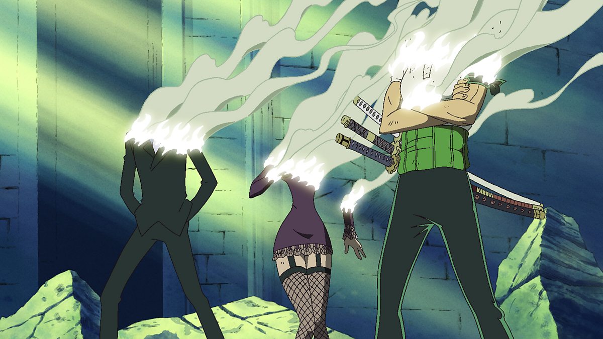 Moria's victims recover their shadows and celebrate regaining their ability to go under the sun. Luffy, Zolo, Sanji, and Robin recover their shadows just in time to avoid being disintegrated.