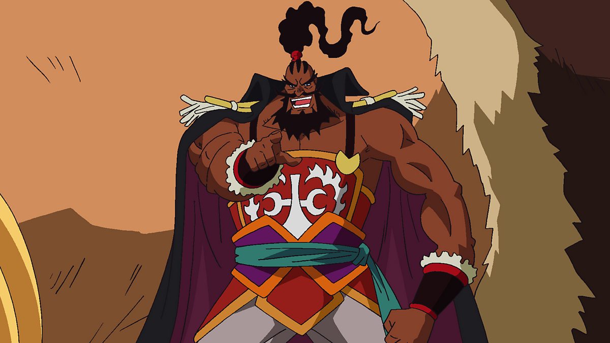 To rescue Lily’s father, Panz Fry, from the Marines, Nami comes up with a plan, and the Straw Hats divide up into the diversion team and the infiltration team. Luffy heads off with the infiltration team even though Nami put him on the diversion team. The infiltration team made up of Zoro, Sanji, Usopp, Lily, and Luffy manage to release Panz Fry from the cross he was chained to, but as they are about to get him off the transport ship, they are attacked by Shuzo of the Neo Marines. Vice Admiral Momonga, who is supervising Panz Fry’s transport, is shocked to find out that his former colleague is the culprit who has recently been raiding pirates. Shuzo inadvertently reveals his group’s leader, Instructor Z, and their mission, to annihilate pirates in the New World. As Shuzo is about to launch a full-scale attack on Panz Fry and the Marines, Momonga steps in and says he won’t let them do as they please on his ship.