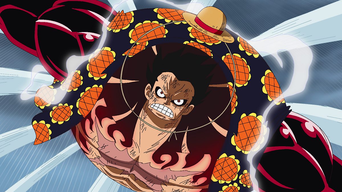 Luffy and Doflamingo continue their battle. Luffy strikes Doflamingo with Leo Bazooka and sends him crashing into the former King’s Plateau. However, Doflamingo is still conscious, and the Birdcage doesn’t disappear. Luffy’s Haki runs out before he can finish Doflamingo off and renders him virtually immobile. Doflamingo gets ready for a counterattack, and Jesus Burgess, who is after Luffy’s Gum-Gum Fruit abilities, sees his chance.