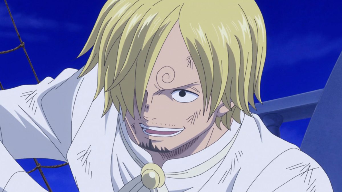 Sanji carries Luffy onboard the Sunny, and Luffy informs his friends of his victory over Katakuri before falling asleep again. Bege and his crew drop off the wedding cake on Funwari Island and wait for Big Mom to take a bite. Perospero tells his siblings that their fate rests on how the cake tastes. As the Sunny hurries to leave Big Mom’s territory, the Straw Hats encounter the Germa fleet. Judge lists Sanji’s shortcomings to Luffy, which, to Luffy, is what makes Sanji so loveable. Then suddenly, the Straw Hats realize that they’re trapped by two huge fleets, one in front and one in back. With an imminent all-out attack from the enemy, it appears to be the end of their escape, but the Sun Pirates come to their rescue.