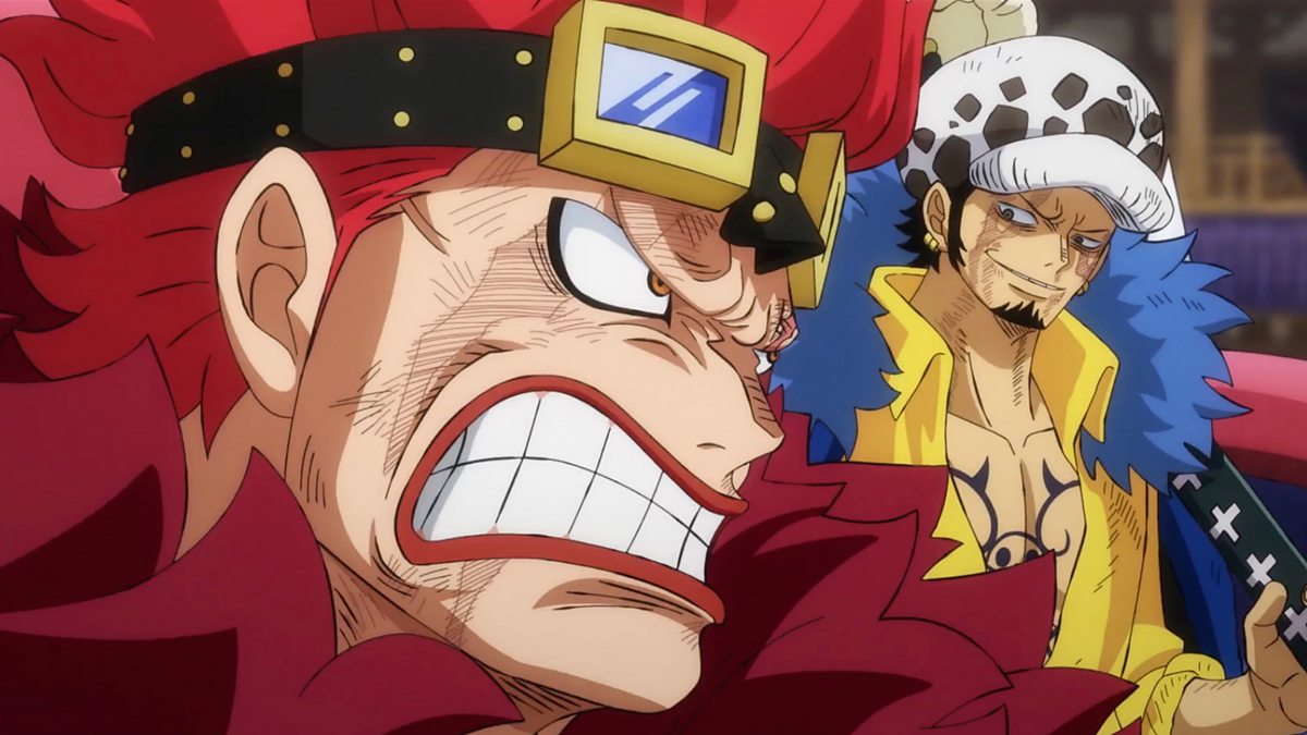 As Momonosuke frantically tries to keep Onigashima away from Flower Capital, Law and Kid continue their battle against Big Mom. Law and Kid use their awakened techniques.