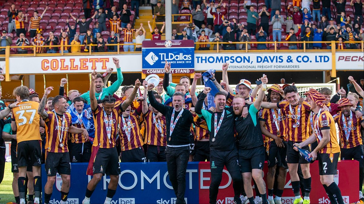 We join the party for Bradford City's open top bus parade as they celebrate promotion to League One.