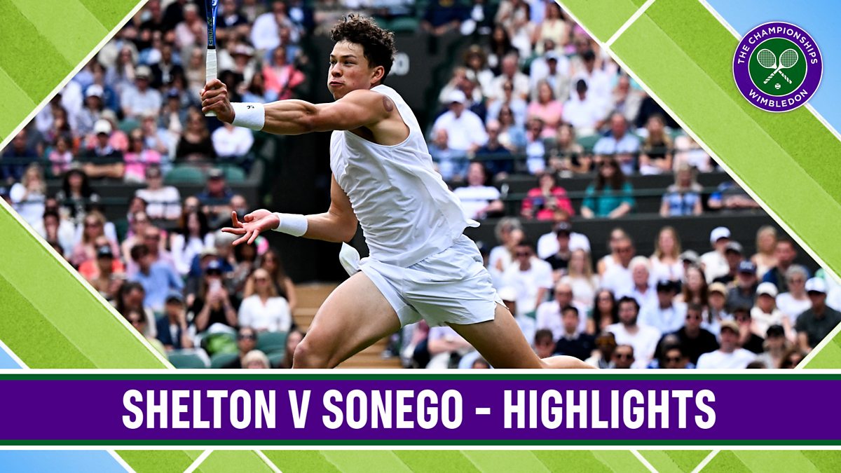 Wimbledon fourth round highlights of Ben Shelton v Lorenzo Sonego.
