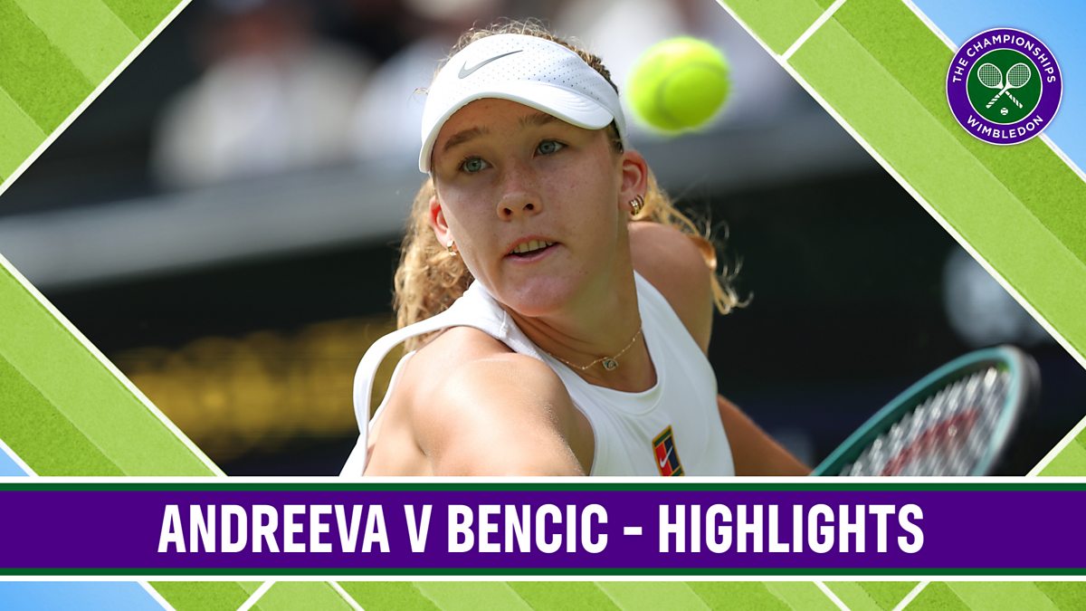 Highlights of Mirra Andreeva v Belinda Bencic in the women's quarter-finals at Wimbledon.