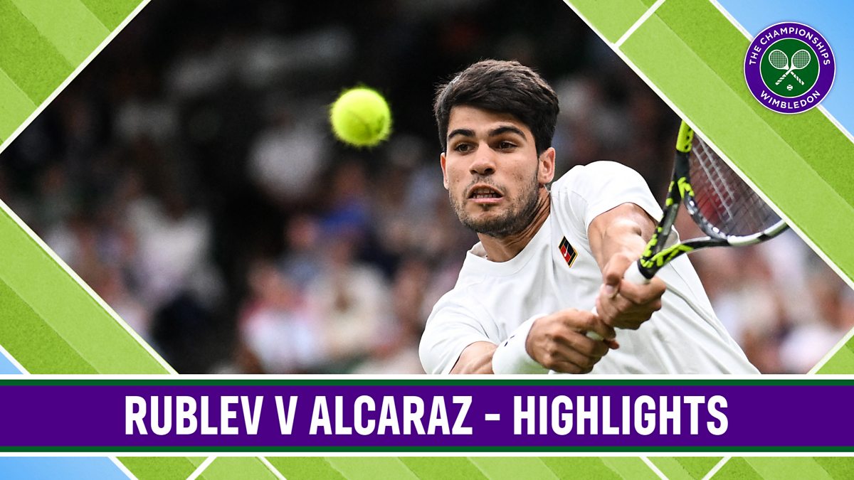Wimbledon fourth round highlights of Andrey Rublev v Carlos Alcaraz.