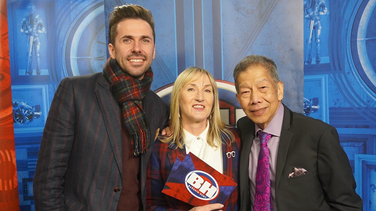 There’s no sitting around in Leominster as two teams of teachers hunt for three bargains to sell at auction over the border in north Wales. On the red team, with expert Tim Weeks, are married couple Laura and Bez. Husband and wife Luke and Becca, assisted by Gary Pe, are in blue. The reds find themselves gazing into a 1950s mirror, but after some reflection, they move on. Meanwhile, Bez spots a cabinet of model trains, but Tim suggests they’re too pricey, so they make tracks.