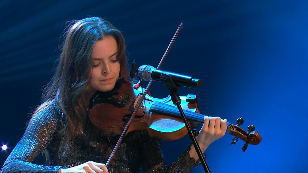 Taisbeanadh le Laura Jane Wilkie agus còmhlan-ciùil aig Duaisean nan Trads, 2024. Anns an t-seata, I Am Sad in the Braes of the Glen, Mermaid agus A Man Ran Off.
