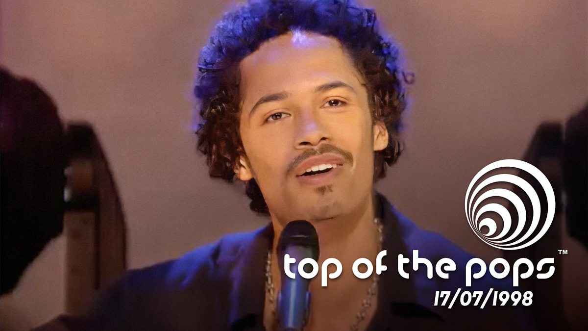 Jamie Theakston presents the pop chart programme, first broadcast on 17 July 1998 and featuring Billie, Celine Dion and The Bee Gees, Pras Michel feat ODB and Mya, Eagle-Eye Cherry, Five, Mousse T feat Hot 'n' Juicy, Garbage and Another Level.