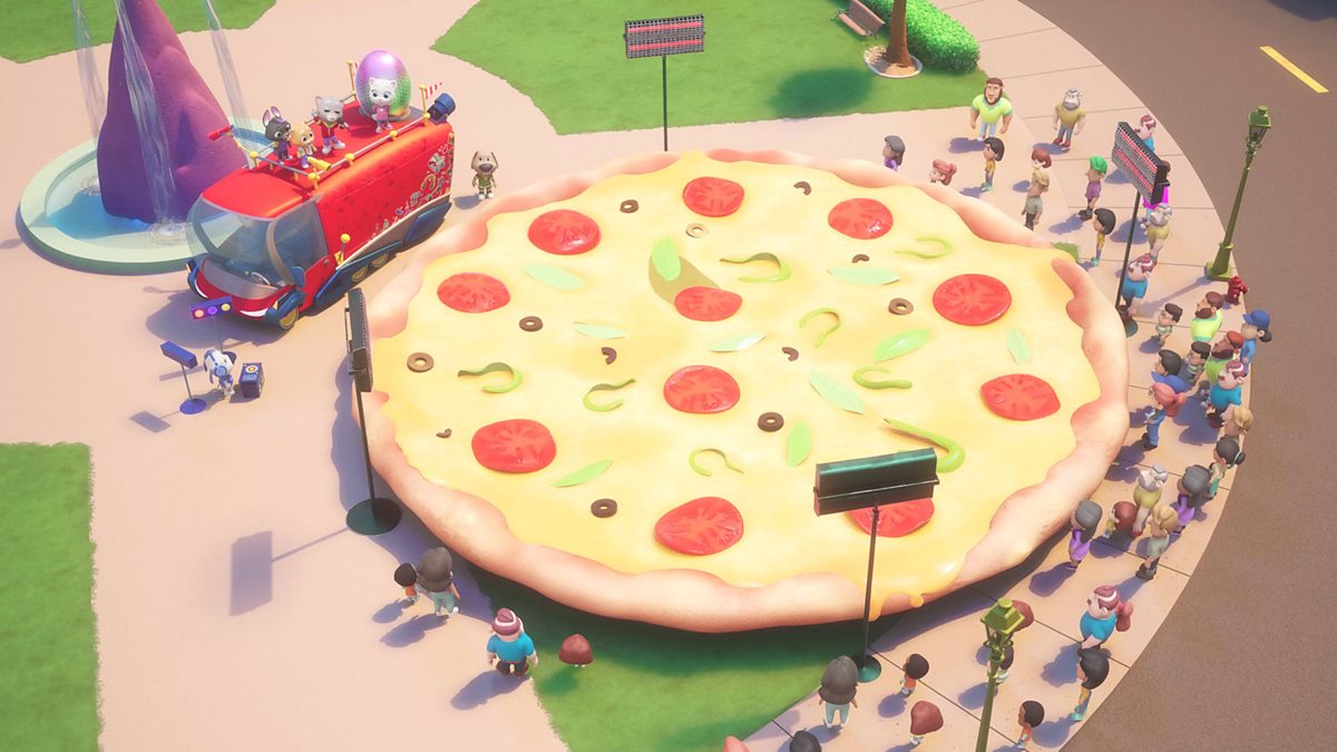 The heroes must save a giant pizza from the Rakoonz, while Tom stays silent to win a bet.