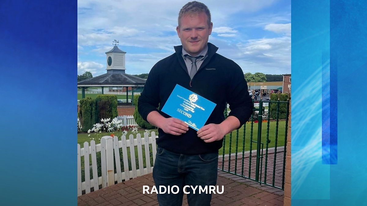Yr arwerthwr Dafydd Davies sy'n sôn am ei flwyddyn lwyddiannus yn ei waith gyda chwmni Farmers Marts ym Mart Dolgellau.