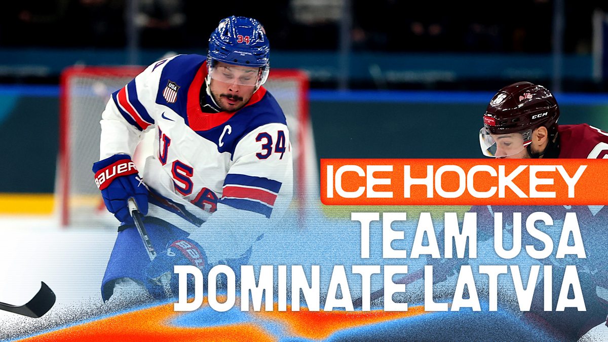 USA defeat Latvia in the men's Ice Hockey as they look to win their first gold since 1980.