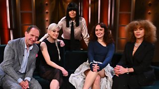 Claudia is joined by Ralph Fiennes, Anna Faris, Olivia Cooke and Michelle de Swarte.(R)