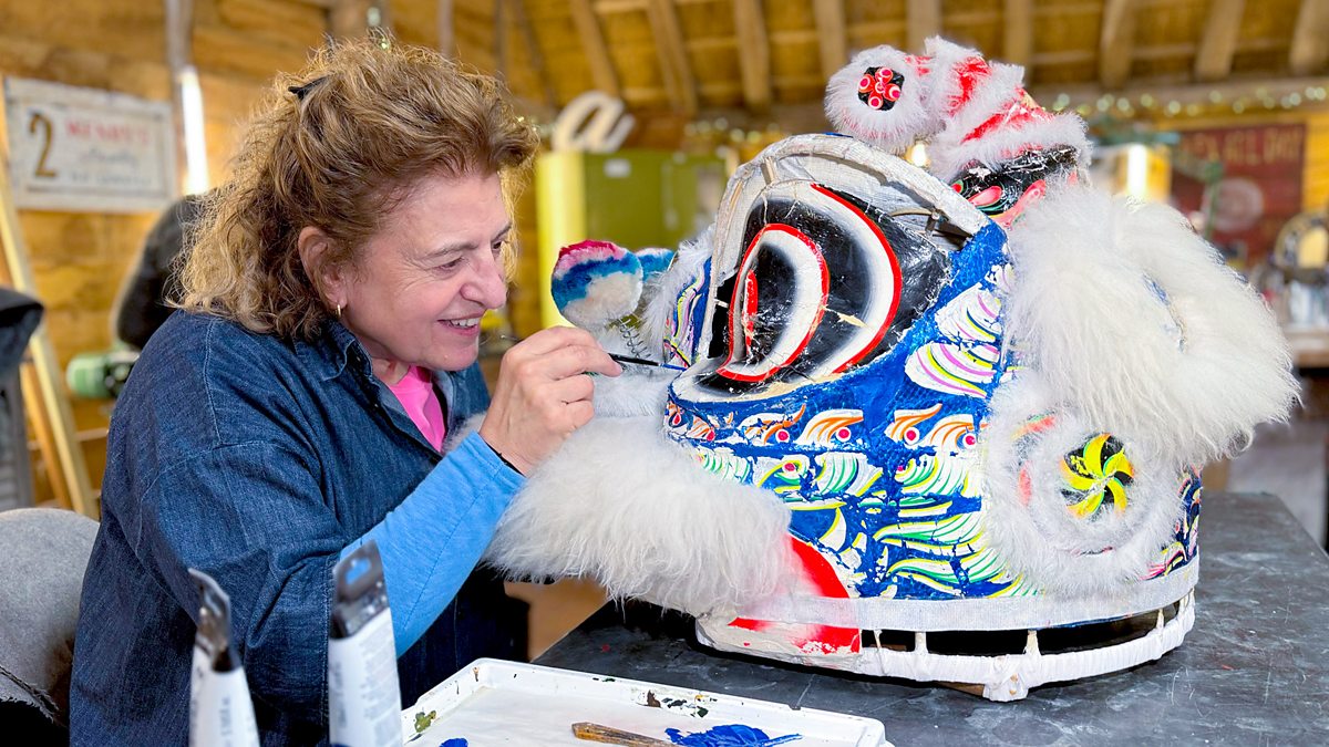 First to arrive in the barn are Tony Sivyer, leader of traditional Chinese lion dance team Dragon of the South, along with Alfie Allard, who has risen through the ranks since joining the group as a child. They’ve brought along a beautiful but broken baby lion, a costume that has trained generations of young performers in the traditional art. But with its bamboo frame weakened, its fabric tattered and its paintwork faded, it will take the combined talents of David Burville, Lucia Scalisi and Rebecca Bissonnet to revive this magnificent ceremonial piece so that it can be ready for many more dragon and lion dance performances.