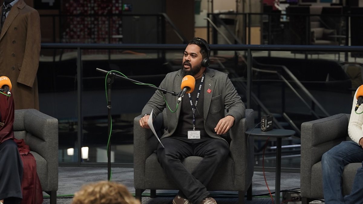 Azim Ahmed hosts a panel discussion with a live audience at BBC Wales in Cardiff Central Square to mark Ramadan 2026.