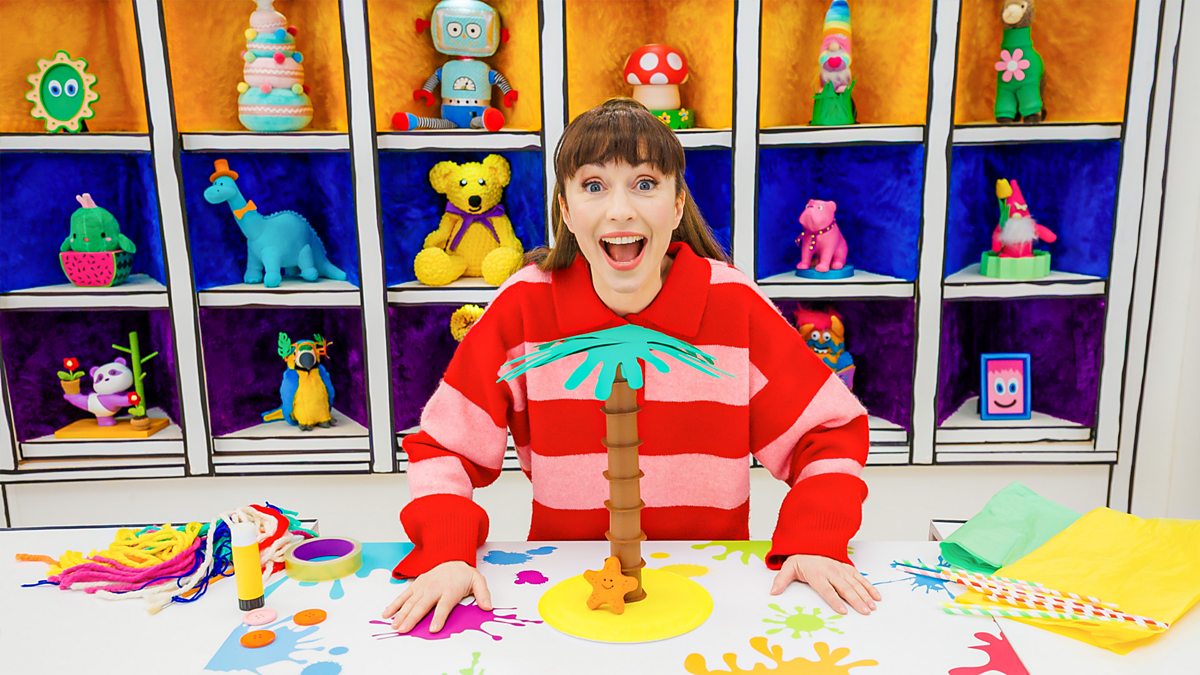 It’s a really hot day in the attic, and Murphi needs to cool the place down to stop Rebecca getting crabby. A paper plate crab is the first make of the day, with the usual supportive song from the Fabulous Fluffs. An old wooden spoon becomes a spoon monster, thanks to the creativity of the Mini Monsters, and Rebecca’s cousin builds a paper bag house. The Recycling Express provides yogurt pots for a palm tree, and the Tiny Helpers make the leaves.