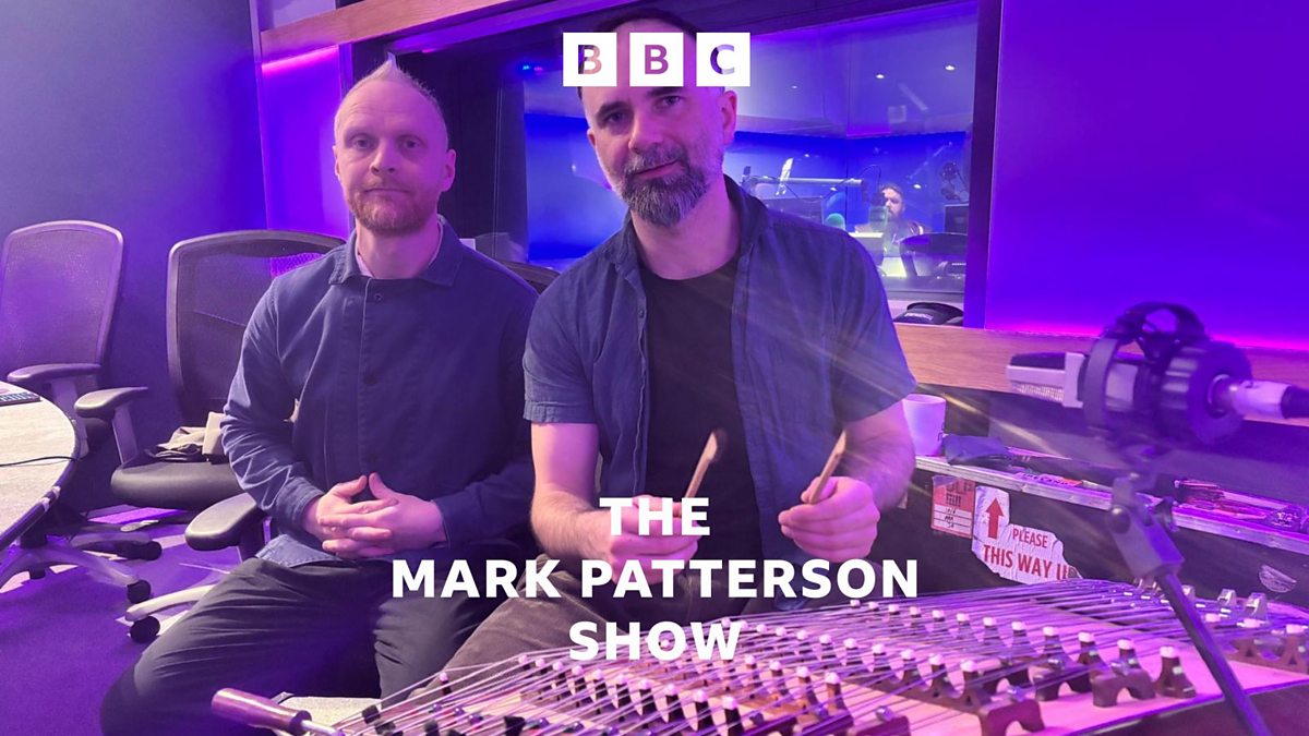 Brian Leach in studio with his hammer dulcimer along with event organiser Marty Coyle from the North West Folk Collective.