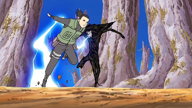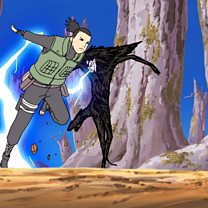 Shikamaru and his comrades desperately counter the Fire Jutsu offensive. But continuously using his Rasengan and Lightning Blade takes its toll on Kakashi.