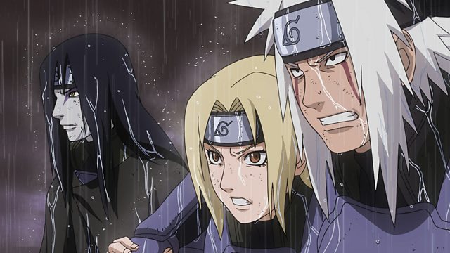 Jiraiya successfully infiltrates the Hidden Rain Village by hiding inside the toad Gamagoro. He sets out to gather information but finds no indications of a civil war occurring within the village. The previous leader Hanzo of the Salamander is gone, and the people now worship Pain as their new leader. A confused Jiraiya proceeds to capture and interrogate two genin. As a result, he learns that Hanzo was killed along with all of his family and followers. Unfortunately, Jiraiya’s activity has already been detected by Pain, the Akatsuki leader and the Hidden Rain Village’s new leader.