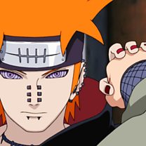 Having lost his arm, Jiraiya is outmatched by the six Pains now appearing before him. Of the six, the one called Tendo is revealed to be Jiraiya’s former student Yahiko.