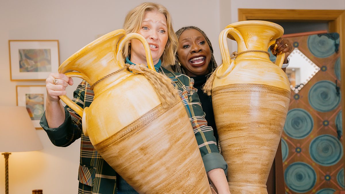 Across town, Thembi and Mirain take a slower, more cautious approach – and clash frequently over what’s worth buying. Vintage wool jackets, jewellery and furniture spark debate, with Mirain keen to take risks and Thembi reluctant to commit. Eventually, they land on a bold upcycling choice: a 20th-century oak hallway chair, bought for £40, which could either flop or become a standout piece.