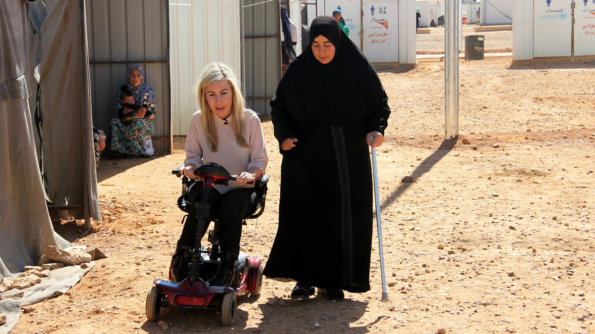 Syria's neighbour Jordan is struggling with a huge refugee population. More than a million Syrians have fled there since the civil war began. Some are in camps, but most live in whatever accommodation they can find in Jordan's towns and cities. The country's health and social care system is under immense strain. For disabled refugees, including those injured during the conflict, the future looks particularly difficult. The BBC's Disability Affairs Correspondent Nikki Fox reports from Jordan.