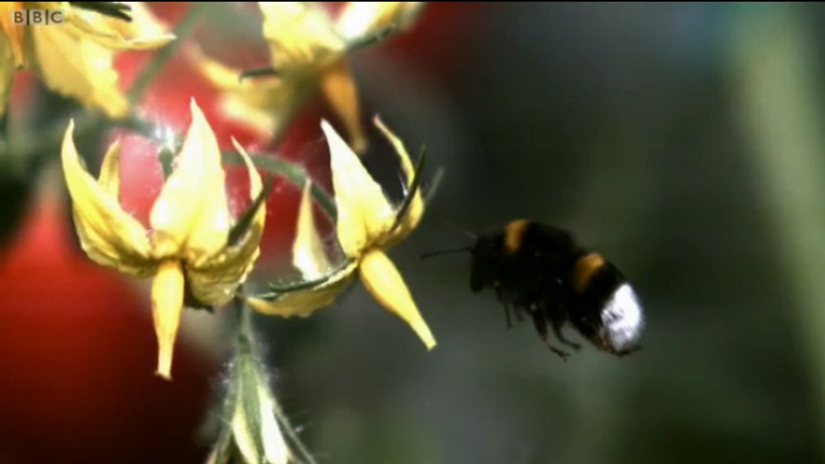 Every time you bite into a cheese and tomato sandwich, it's likely you have a bumblebee to thank. Without them, most of Britain's tomatoes would wither on the vine. The secret is in the buzz. When a bumblebee visits a flower it disengages its wings and runs its flight muscles in neutral, becoming the perfect vibrator and knocking pollen off. Glasshouses were built to exclude insects, but the success of the hi-tech multi million pound tomato farms relies on bringing them back in. Every year 2.5 million bees are set to work in these glasshouses to make tomatoes for our consumption.