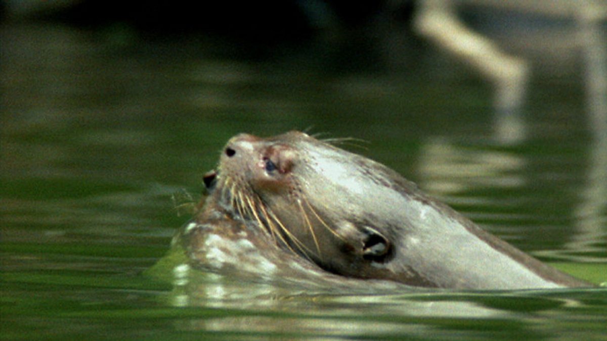 As the river rises and the forest floods, dry season otter dens are submerged forcing families to move to their wet season dens on the higher ground. The whole family shares the task of looking after the young with the adults carrying the younger infants, who are not yet strong enough to swim the distance, in their jaws.