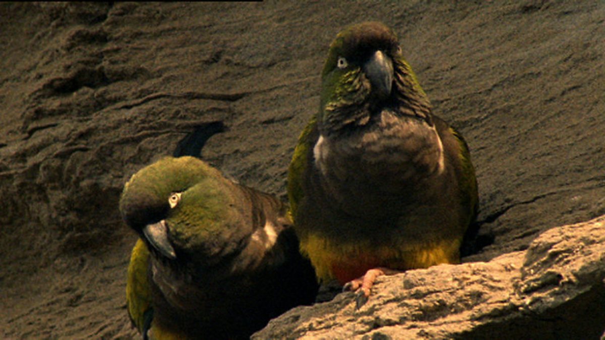 This is one of the few places where parrots nest by the seaside. The cliff face has no trees to build nests in, so the parrots literally have to excavate holes in the rock. These cliff colonies can contain more than 50,000 parrots.