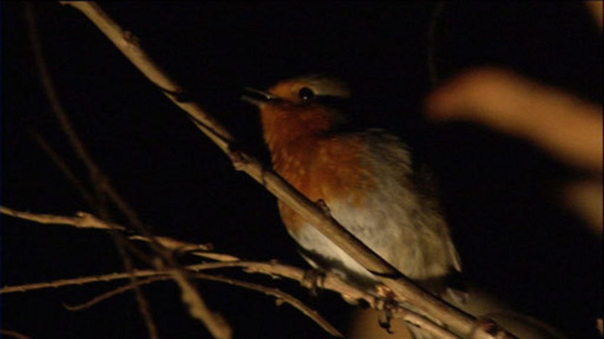 City robins sing their hearts out - even in the middle of a cold, winter night.