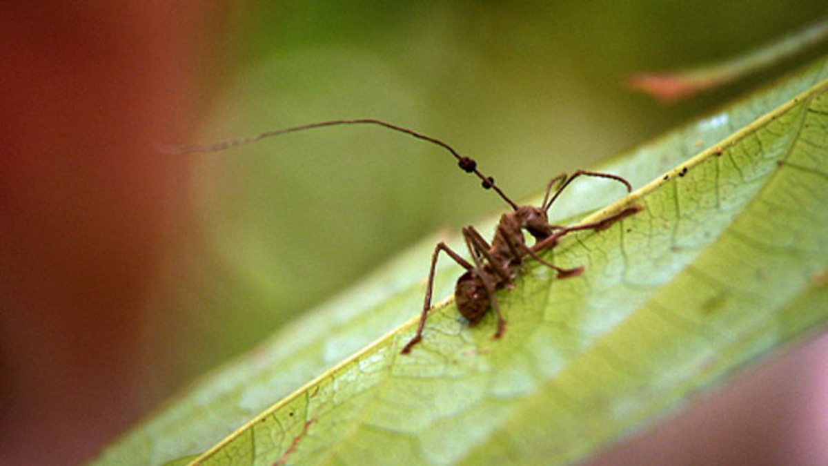 In the forests of Papua New Guinea, fungal spores infect ants and compel them to crawl upwards and glue themselves to the undersides of leaves. With the ant glued in place, the fungus continues to grow and uses the ants body as food, eventually forcing a stalk with spore sacs through the ant's head, before exploding to shed more spores throughout the forest.