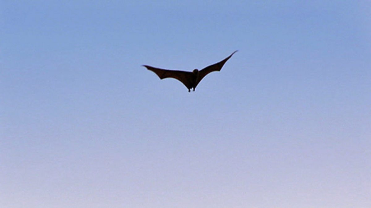 As the expedition journeys along the river, the boat's engines disturb a colony of flying foxes roosting in the tree tops. Flying foxes are the largest bats on the planet. Living in huge colonies flying foxes (or fruit bats) feed exclusively on fruit. By spreading the seeds in their faeces, the bats are responsible for the continued diversity of the forest, often dispersing the seeds for miles around.