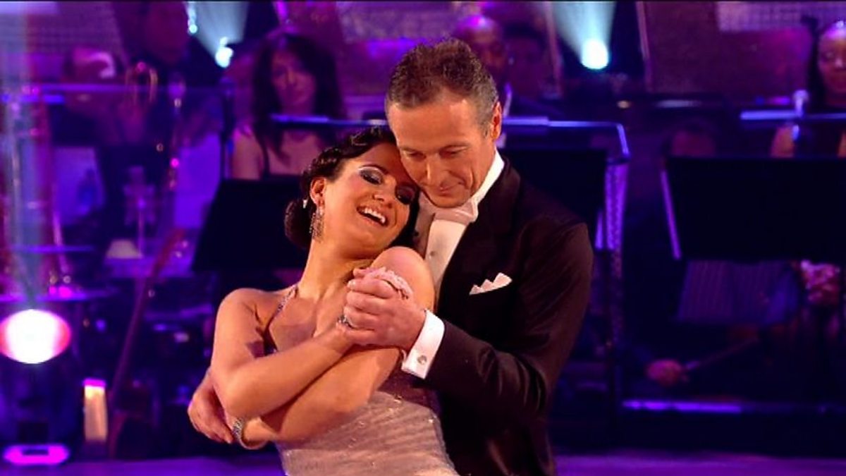 Horse racing legend Richard Dunwoody and his dance partner Lilia Kopylova perform a Waltz to Lionel Richie's song "Truly".