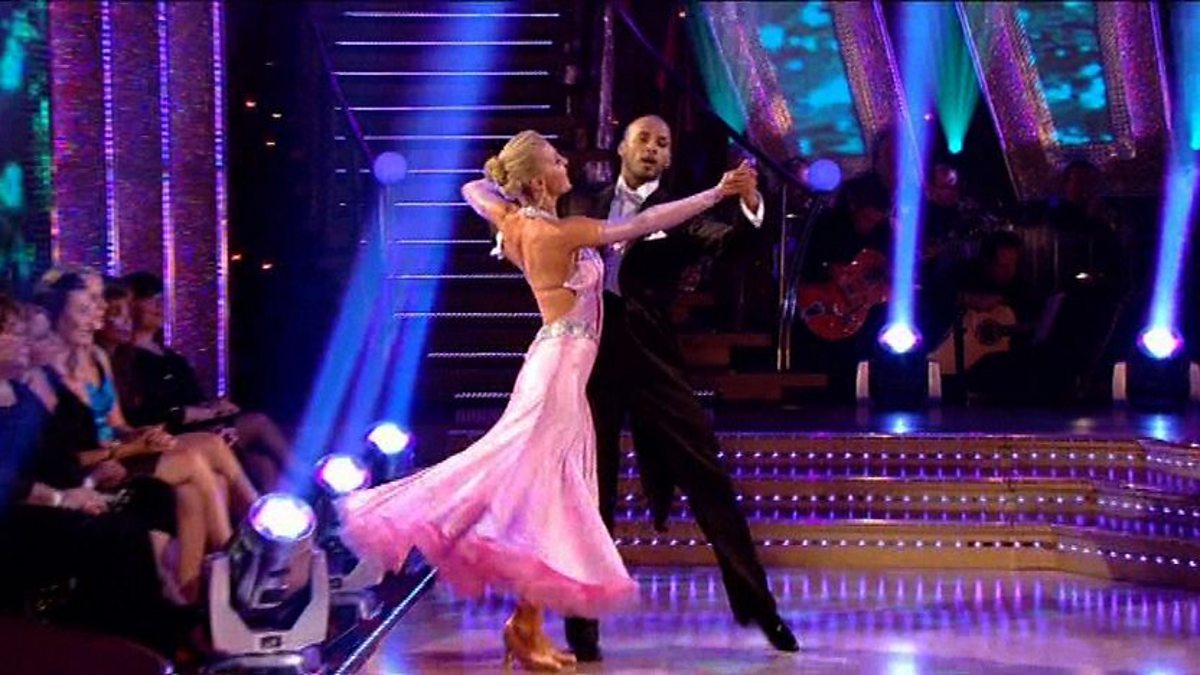 Actor Ricky Whittle and his dance partner Natalie Lowe perform a Viennese waltz to "How Can I Be Sure" made famous by David Cassidy.
