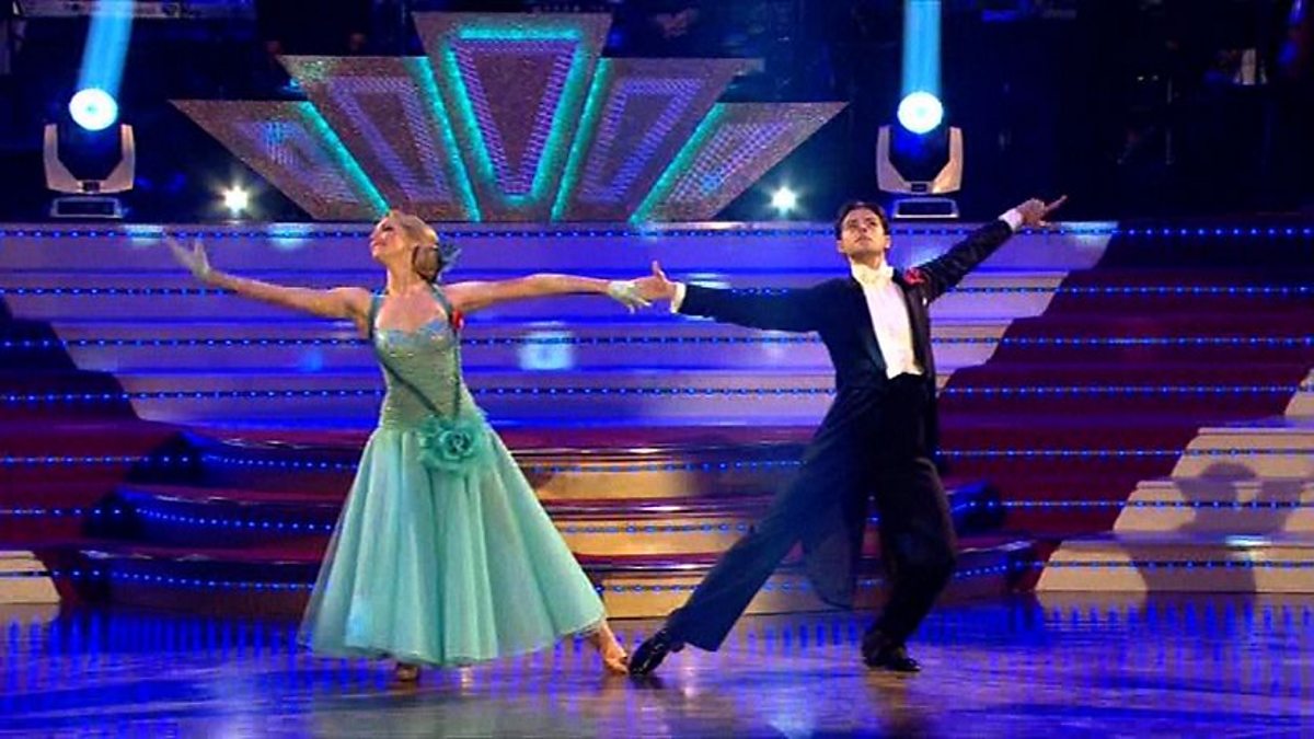 Whilst the celebrities nervously wait to find out their fate, the professional dancers treat us to a stunning Viennese waltz, and music is provided by the legendary Rod Stewart.