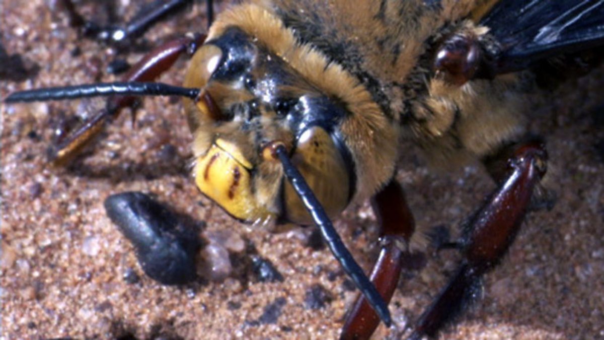 Flowers are rare in the Australian outback, so colonies of bees are few and far between. Female Dawson's bees, one of the largest bees in the world, dig tunnels for their young to grow up in. There are no males around at this time and the female bees are quite peaceable - tempers only flare if one bee gets confused and enters the wrong hole. But earlier in the season, as the females emerge from their tunnels for the mating season males gather, attracted to and inflamed by the scent of the females. They are huge and built for fighting, and violence erupts as they jostle for the best position near the nesting tunnels. Unusually in the animal kingdom, the males will sting and bite each other to death for the opportunity to mate. Some females accidentally end up as casualties, caught in the crossfire. By the end of the season, when all the females have emerged, all the males are dead once more and only the strongest will have mated. Underground the next generation is developing.