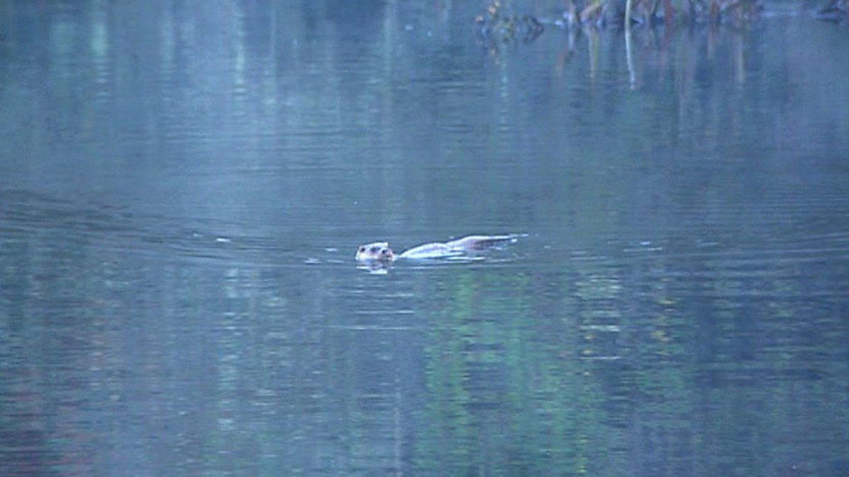 On a still freshwater lake in Pembrokeshire, West Wales, Chris and Kate see the ripples of a female otter hunting for food.