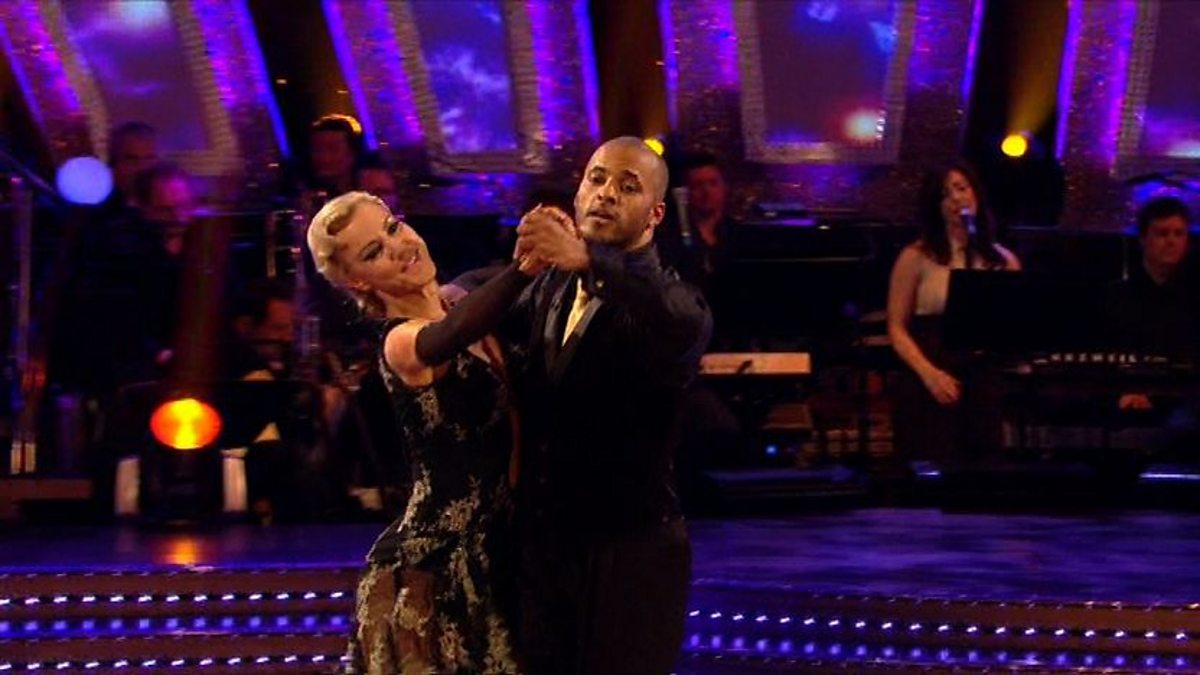 Actor Ricky Whittle and his dance partner Natalie Lowe perform an American Smooth to "Over the rainbow"